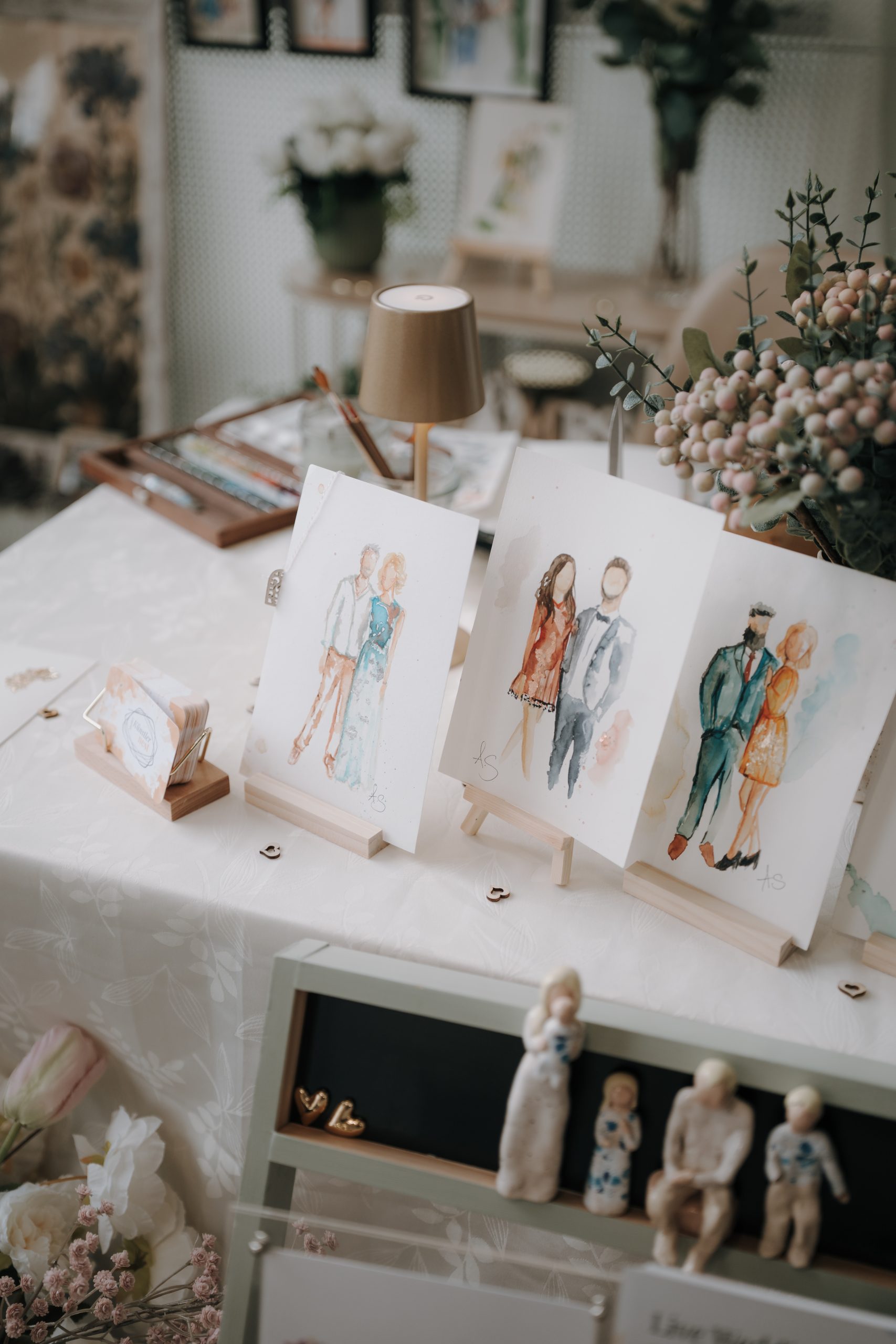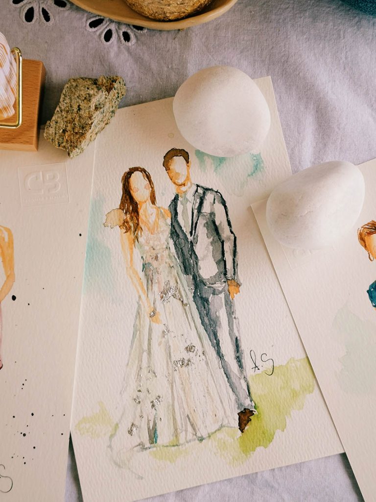 Deine Gäste erhalten etwas, was weit über klassische Gastgeschenke hinausgeht: ein individuell gemaltes Porträt, das sie mit nach Hause nehmen können.